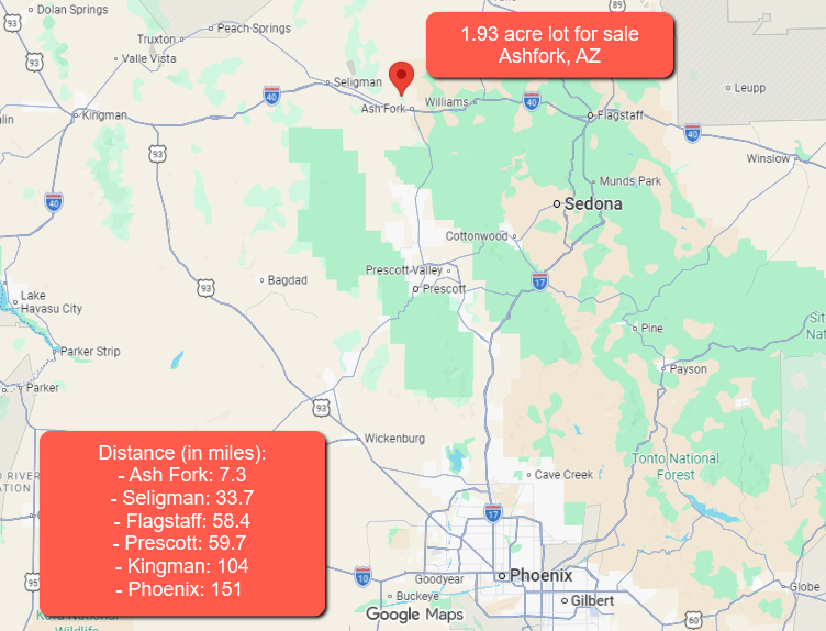 Ash Fork is known for its rich railroad history, Route 66 charm, and welcoming small-town atmosphere. Often called “The Flagstone Capital of the World,” this historic community offers everyday essentials, local services, and a relaxed pace of life surrounded by classic Northern Arizona scenery. Its central location also makes it easy to reach nearby destinations like Williams, Prescott, and the Grand Canyon, giving property owners the benefit of rural living with access to some of the state’s most iconic places.